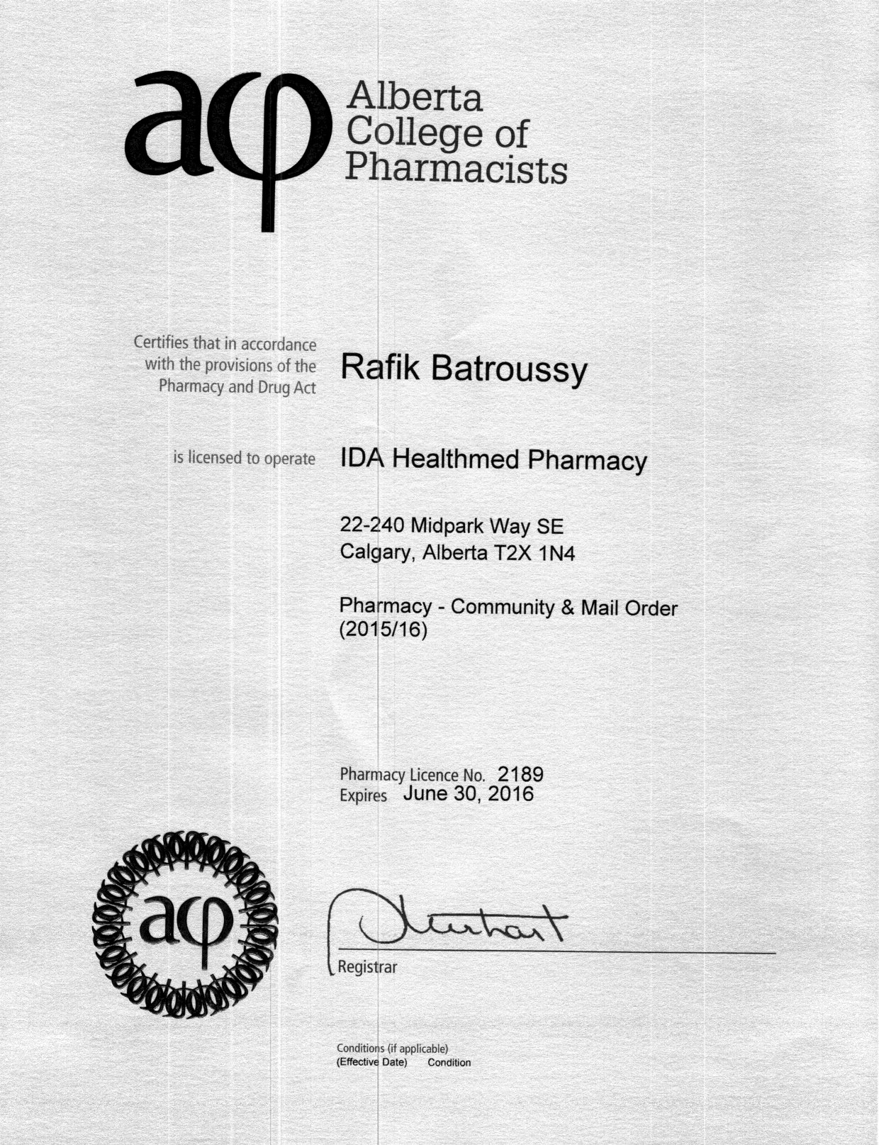Rafik Batroussy Pharmacy Manager and Proprietor Representative, Lic #6709 Practice Number: 2189