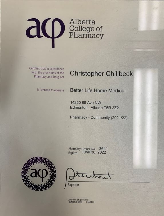 Christopher Chilibeck Pharmacy License No. 3641 Pharmacy - Community (2021/22)