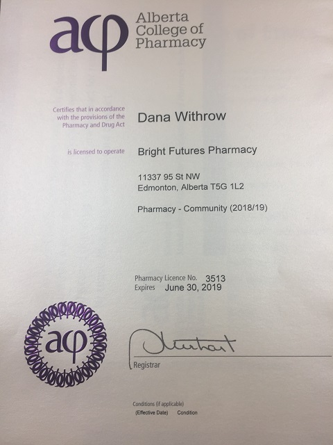 Dana Withrow Pharmacy License No. 3513