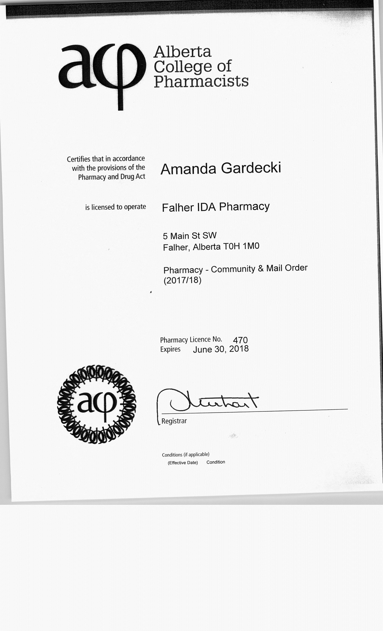 Amanda Gardecki Pharmacy License Number: 470