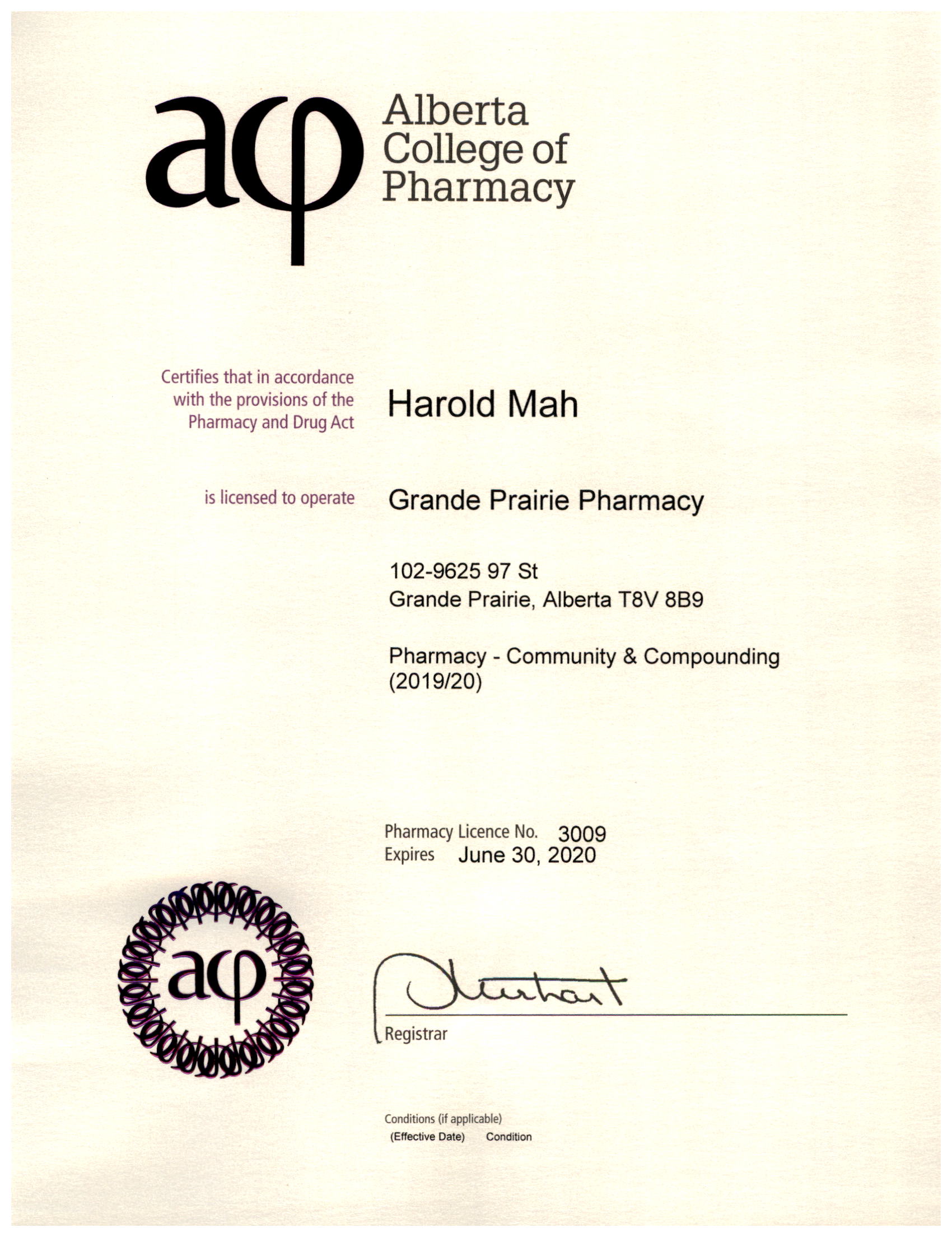 Pharmacist Clinical Register: Harold Mah Pharmacy license: 05354
