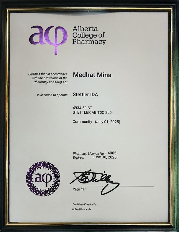 Medhat Mina Pharmacy License No.: 4005 Community (July 01, 2025) Expires: June 30, 2026