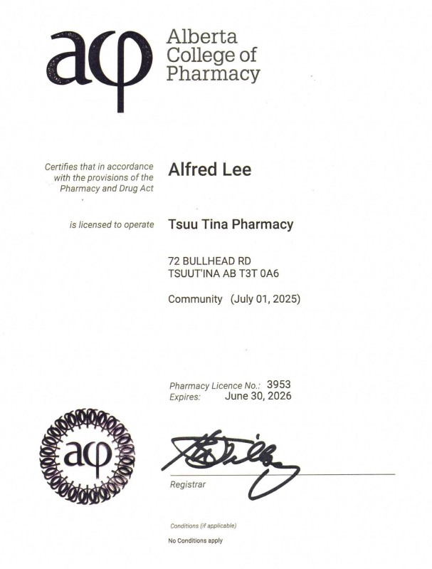 Alfred Lee Pharmacy License No.: 3953 Community (July 01, 2025) Expires: June 30, 2026