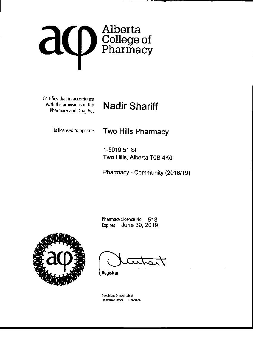 Nadir Shariff Pharmacy Manager and Proprietor Representative Pharmacy License No. 518