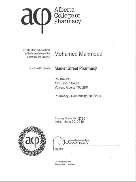 Mohamed Mahmoud Pharmacy License No. 2750 Pharmacy - Community: (2018/2019) Proprietor: Scott Mitchell