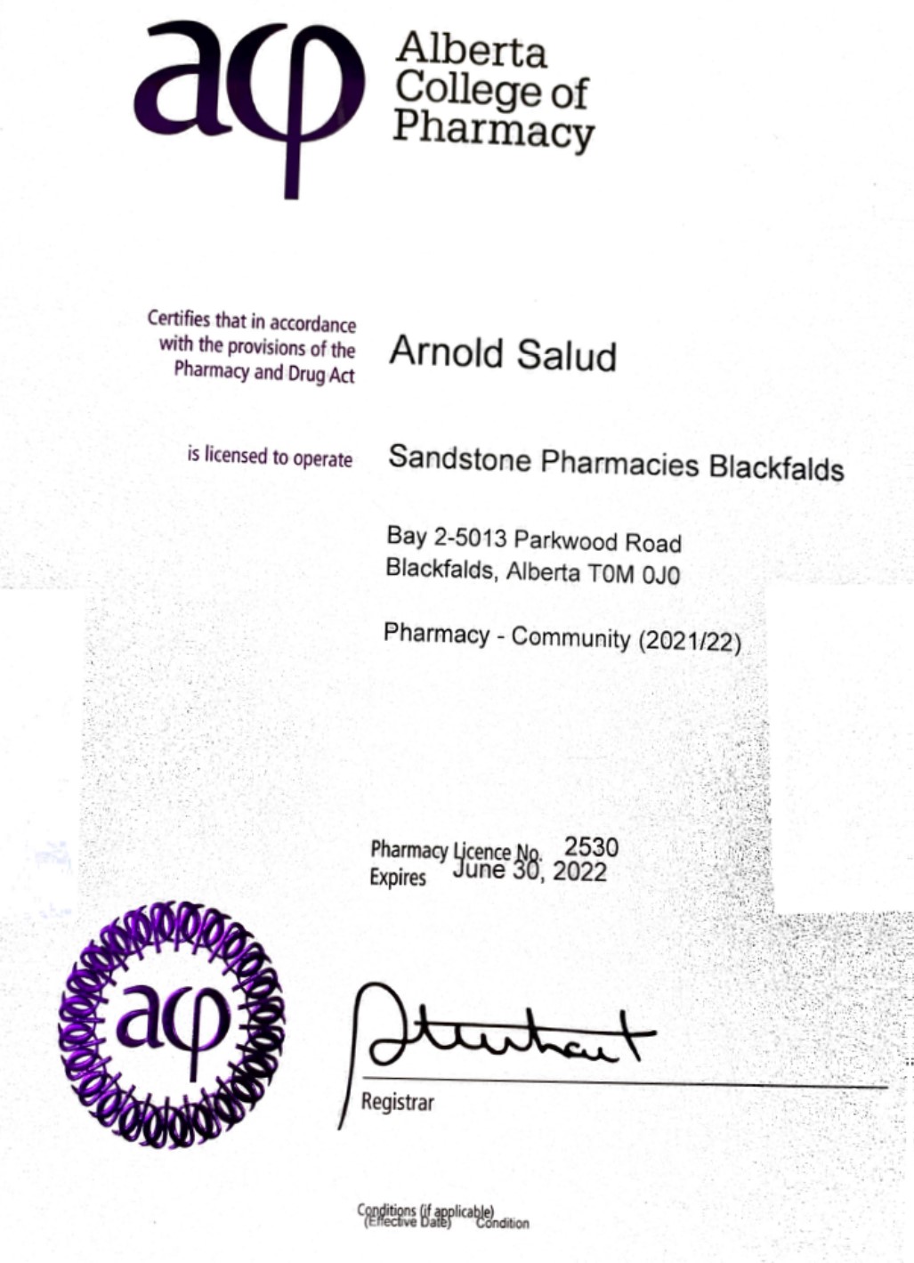 Pharmacy Manager, Lic #7394Programmes et services généraux