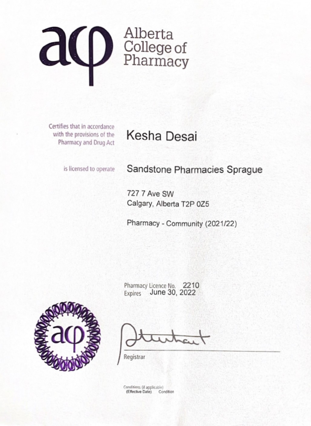 Pharmacy Manager, Lic #7475Programmes et services généraux